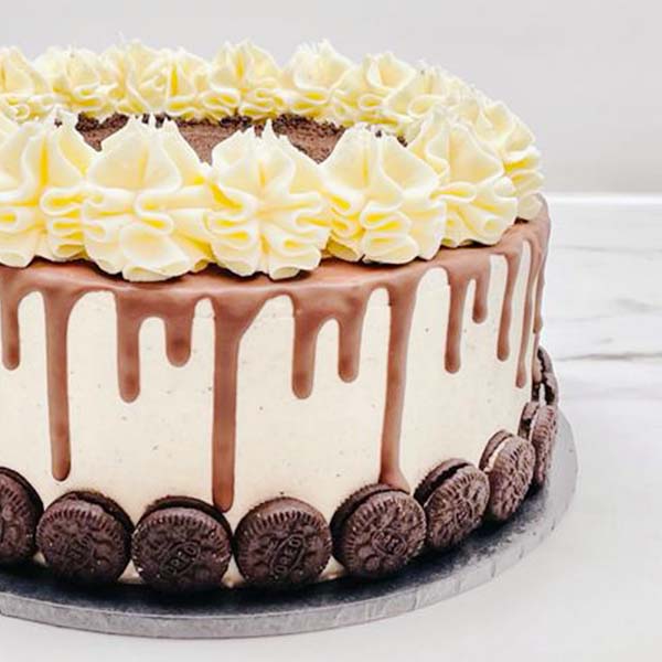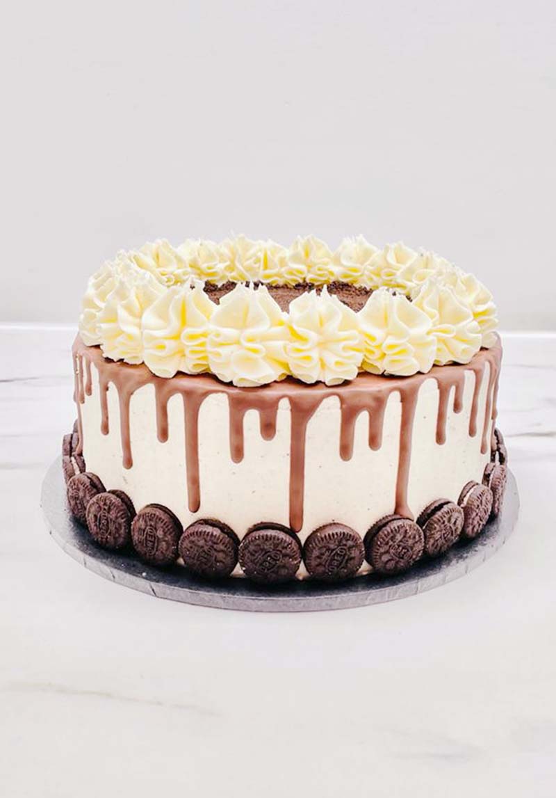 - Ingredients: Flour, brown sugar, cocoa powder, butter, eggs, milk, chocolate, raising agents, flavouring, icing sugar, and Oreo cookies.