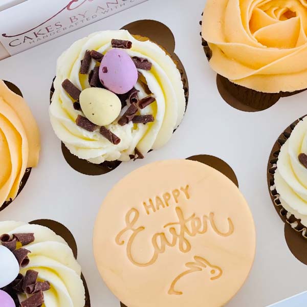 Celebrate Easter with this beautifully handcrafted cupcake gift box! Featuring elegant yellow buttercream roses, nest-inspired cupcakes with chocolate shavings and mini eggs, and a charming “Happy Easter” fondant topper. Made with the finest ingredients, these delightful treats are perfect for gifting or enjoying with loved ones!